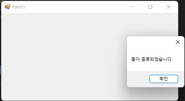 C#, 윈폼 프로그램에서 Form_Load, FormClosing, FormClosed 이벤트에 대해 알아봅니다. 이벤트설명Activated폼이 활성화 될 때마다 발생한다.FormClosing폼이 닫히기 전에 발생한다.FormClosed폼이 닫힌 후에 발생한다.Load폼을 로드 할 때 발생한다.Resize폼의 크기를 조종할 때 발생한다. FormClosing 이벤트의 예 다음 코드는 폼의 닫기(X 버튼)를 누를 경우, "프로그램을 종료할까요?"를 출력하고, [아니오] 버튼을 누르면 폼이 닫히는 것을 취소합니다. private void Form1_FormClosing(object sender, FormClosingEventArgs e) { DialogResult..