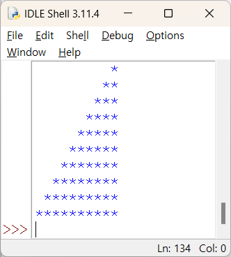 파이썬의 반복문 for를 이용해서 여러 가지 모양의 삼각형 모양의 별(*)를 출력하는 코드입니다. 1. n=10 for i in range(n): for k in range(i+1): print('*', end='') print() 2. n=10 for i in range(n): for k in range(n-i): print('*', end='') print() 3. n=10 for i in range(n): for k in range(n-i-1): print(' ', end='') for k in range(i+1): print('*', end='') print() 4. n=5 for i in range(1, n+1): for k in range(n-i): print(' ', end='') for k..